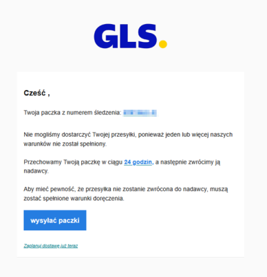 Oszustwa internetowe, związane z transportem paczek stają się ostatnio coraz bardziej powszechne. Przestępcy nadużywają nazw i logo znanych firm transportowych, takich jak GLS, w celu popełnienia oszustwa lub uzyskania dostępu do poufnych informacji.